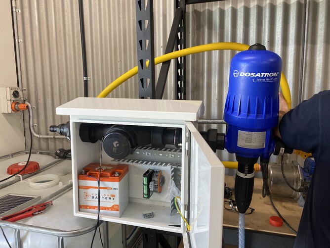 By installing an electronic water meter, tank pressure sensors, control valves, conductivity sensors and a controller unit the Dosatron operation can now be monitored and controlled remotely.