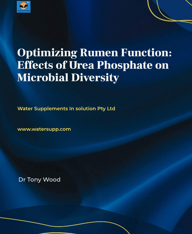 The urea phosphate molecule is stable in the rumen and not broken down by the enzyme urease. This property of urea phosphate is important in that it does not release ammonia rapidly into the rumen and is therefore, unlike urea, non toxic. It is a safe method of feeding non protein nitrogen and preferable to urea. Urea phosphate is also stable in all types of drinking water, including highly alkaline bore water. This is in contrast to urea, which breaks down to ammonia in alkaline water and is lost to the atmosphere. The stability and solubility of the urea phosphate molecule makes it ideal for feeding to livestock through the drinking water.
